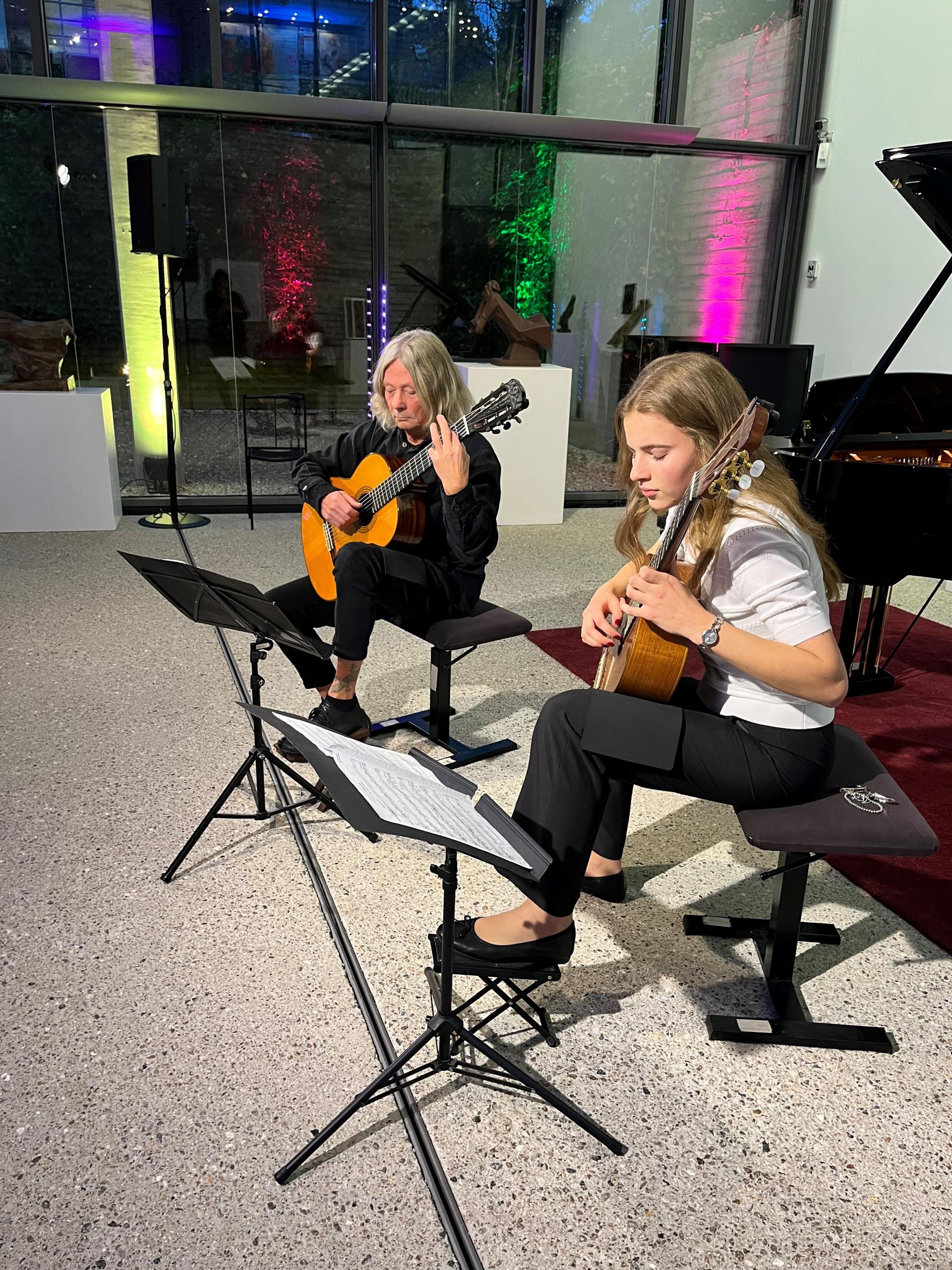 Im festlichen Rahmen des Konzertes werden auch in diesem Jahr die Absolventinnen und Absolventen der Kreismusikschule verabschiedet. Dazu gehört Inga Henke, die seit neun Jahren Gitarrenunterricht bei Burghardt Steltner erhält – und dies sehr erfolgreich. Bei vielen Auftritten stellte sie ihr Können als Solistin und im Gitarrenduo unter Beweis. Dreimal nahm sie am Wettbewerb „Jugend musiziert“ teil und erreichte in den Jahren 2021 und 2024 sogar das Bundesfinale. Inga legt in diesem Jahr ihr Abitur ab und verabschiedet sich mit einer „Milonga“ des argentinischen Komponisten Jorge Cardoso.