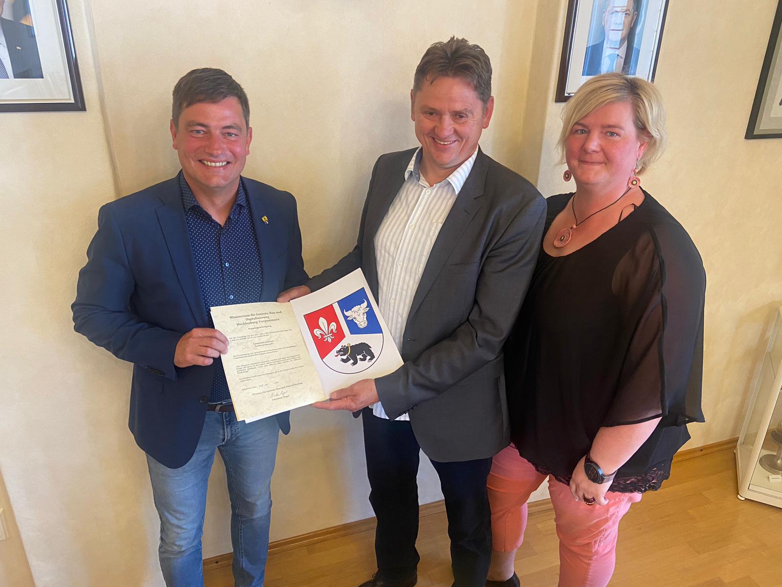 Landrat überreicht Wappen an die Gemeinde Nustrow