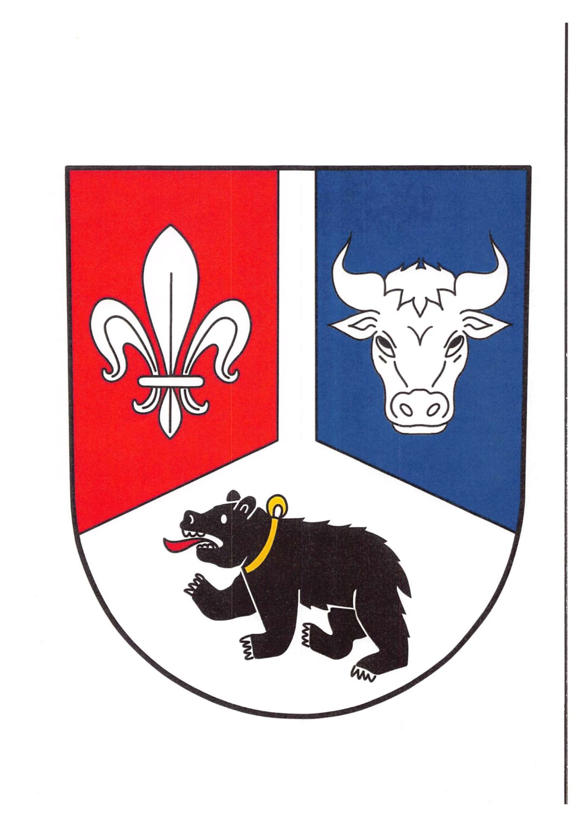 Das Wappen wird wie folgt beschrieben: „Mit silbernem Göpelstück gespalten von Rot und Blau, das Göpelstück belegt mit einem rot gezungten, silbern bewehrten schwarzen Bären mit goldenem Halsband, vorne eine silberne Lilie, hinten ein silberner Rinderkopf.“
